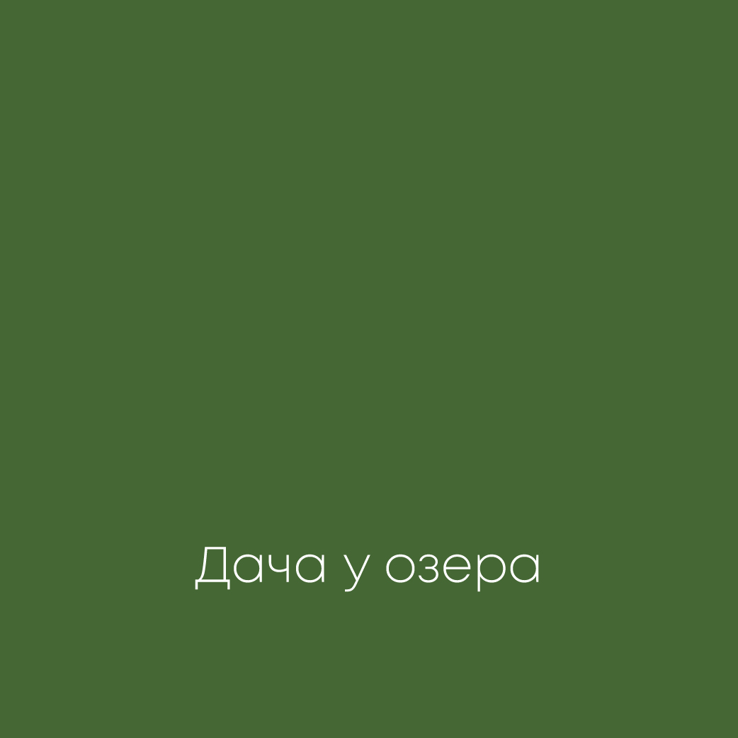 После посещения дачи Сталина у озера Рица в памяти четко отпечатывается цвет сооружения. Здание полностью выкрашено в этот зеленый оттенок. И благодаря бликам прекрасного озера дача приобретает свой неповторимый тон, который появился в палитре.